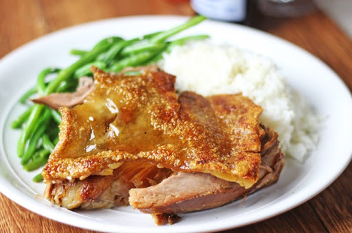 A foolproof EASY slow cooker and oven method for a shatteringly crisp Pork picnic shoulder that is pull apart tender on the inside with a thin crisp cracklin' skin layer.