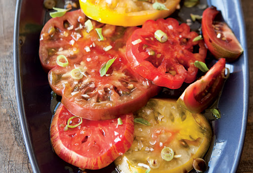 Even if you use just one or two varieties of heirloom tomatoes—which come in a dazzling array of colors and have names like Big Rainbow, Green Zebra, Chocolate Cherry and Aunt Ruby's German Green—this side dish will be the best-looking one on the table. Plus, it can sit out at room temperature for a few hours.