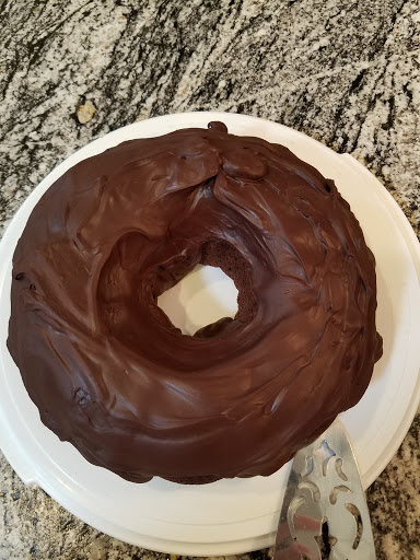 While the cake is cooling, make the glaze. Place the chopped chocolate and butter in a small heat-safe bowl and melt in the microwave in 30-second bursts at 70% power or over a double boiler, stirring until melted and smooth. Add the whipping cream and coffee, wine or water, and mix to combine well. Allow the glaze to sit until no longer hot to the touch. Pour the glaze evenly over the top of the cooled bundt cake. Allow to set at room temperature or in the refrigerator before slicing and serving.