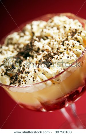 Pour milk into bowl whisk till nice and thick the add the sugar then fold the sugar in the milk.now get a glass or a ramekin and fill half of it with custard and the other half with your whipped sugar milk and now add your chocolate shavings.