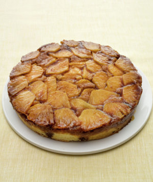 Carefully spread the batter over the pineapple and bake until a toothpick inserted in the center comes out clean, 50 to 55 minutes. Let cool 10 minutes, then invert cake onto a serving platter. Rearrange any pieces of pineapple that have stuck to the pan. Serve warm.