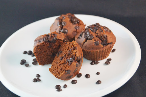 3. In a large mixing bowl, combine the flour, baking powder, baking soda, cocoa powder and cinnamon then add the wet ingredients to the dry, throw in the chocolate chips and fold the mixture together, you want quite a loose batter so you may want to add another tbsp of milk, then spoon the mixture into the muffin cases (about 3/4 of the way full) and pop in the oven for 20 – 25 minutes until a skewer comes out clean.