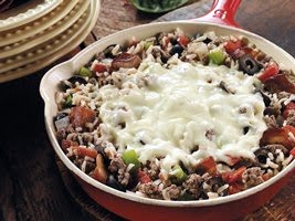In 12-inch skillet, cook bacon over medium-high heat until almost crisp. Add beef, onion, bell pepper, garlic and salt; cook 5 to 7 minutes, stirring frequently, until beef is thoroughly cooked; drain.