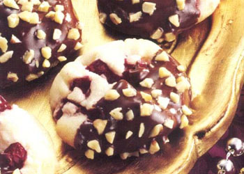 Dip half of each cookie into melted chocolate and then in nuts. Allow chocolate to dry completely.