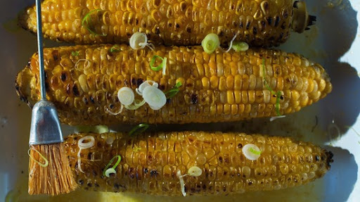 2. Heat a charcoal or gas grill to high heat. Brush the corn with the canola oil and grill until charred on all sides, about 4 minutes total. Brush the miso-butter mixture on the hot corn. Serve sprinkled with the scallions.