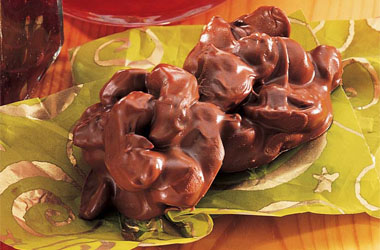 Melt chocolate in a double boiler. Remove from heat and cool slightly. Stir in dried cranberries and nuts. Drop by teaspoonfuls onto a cookie sheet. Let harden at room temperature or chill in refrigerator.