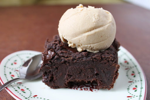Bake for 35 minutes. Let cool until a bit above room temperature. Serve warm, with ice cream.