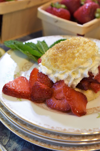 While biscuits are in the oven, hull and slice the strawberries and stir in ½ cup sugar and place in the refrigerator until ready to use
