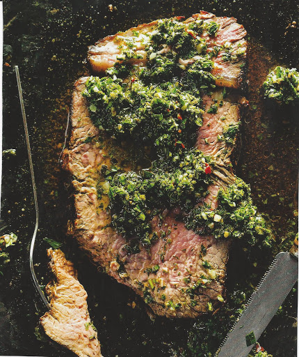 A saltwater brine prevents fresh herbs from discoloring in the zesty chimichurri that dresses this succulent rib eye, adapted from a recipe in Francis Mallmann's "Seven Fires" (Artisan, 2009).