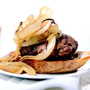 Need a new burger recipe? You'll love this one with seasoned beef and sauteed onions served on French bread.