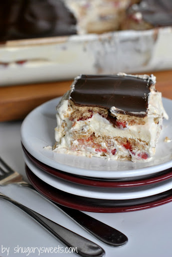 For the frosting, mix melted baking chocolate with corn syrup. Add vanilla, butter, powdered sugar and milk and whisk thoroughly until smooth. Spread over top layer of graham crackers. Cover and refrigerate cake for 2 hours or overnight. ENJOY!