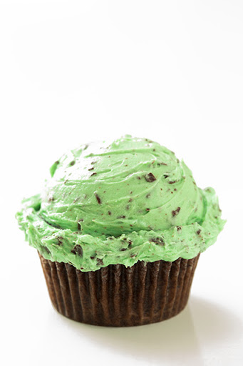 Divide batter among 12 paper lined muffin cups and bake in preheated oven until toothpick inserted into center comes out clean, about 19 - 21 minutes. Remove from oven and allow to cool in muffin tin several minutes before transferring to wire rack to cool. Cool completely then frost with Fluffy Mint Chocolate Chip Buttercream Frosting. Store in an airtight container.