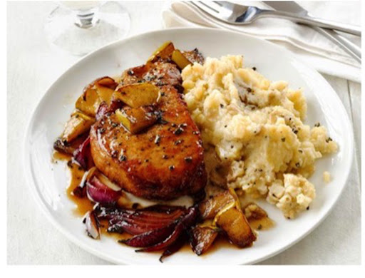 Pork Chops With Apples and Garlic Smashed Potatoes