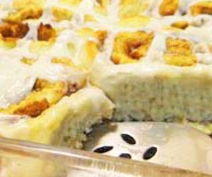 Remove the rolls from the oven and allow them to cool for 5 - 10 minutes. Spread the icing on each cinnamon roll and serve them warm.