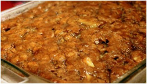 5 Note~this batter is VERY stiff, don't worry, it's suppose to be that way. When the apples cook they add plenty of moisture to the cake to make it moist. Plus, your going to add more moisture when your glaze soaks inches.