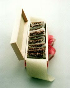 4.Let stand at room temperature for 24 hours. Using a large knife, lightly score 1 3/4-by-2 3/4-inch rectangles over chocolate. Cut toffee along scored lines; lift pieces out with a spatula. Alternatively, toffee may be broken into shards. Store in an airtight container for 3 to 4 weeks.