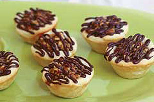Bake in a preheated 350 degree oven for 25 minutes or until filling is set. Cool; remove from pans