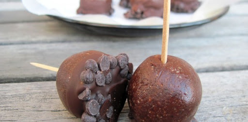 Push a toothpick into your ball, dip it in the chocolate half way up the ball, then dip into your chocolate chips.