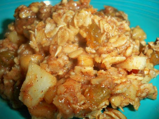 I love apples, and oatmeal. You may use quick or old fashioned oatmeal for this — just whatever you have. Try this with some frozen blueberries or any other dried fruit. I used Craisins and frozen raspberries often. This is another recipe from the wall of our old house. Which means, I have no idea where it came from after 7 years. I'm posting these because they are my favorites if they made it to the wall. As one reviewer said, it holds well in the fridge, because I usually make mine on a Sunday night, then the kids have something hearty and warm in the morning before the mad dash to school!