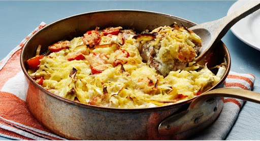 Sprinkle cheese on top and bake in the middle of the oven for at least 30 minutes or until the chicken is fully cooked. If the casserole is at risk of burning before it's done, cover it with a piece of aluminum foil, lower the heat and let cook for a bit longer.