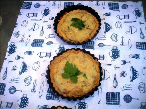 Heat the little tarts and filling with this stuff. Serve inmediately and garnish with some chives or parsley.