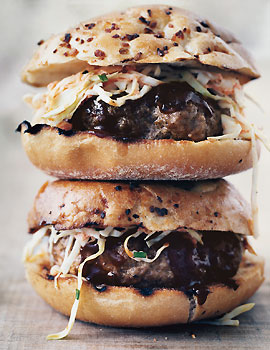 Brush cut sides of rolls with remaining 1/4 cup barbecue sauce, then sandwich patties and coleslaw between rolls.