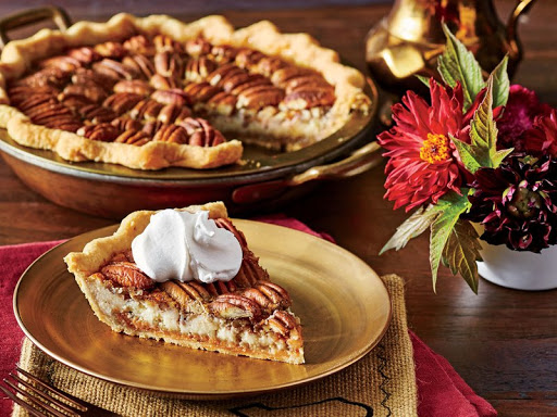 Sprinkle chopped pecans over Cream Cheese Filling in piecrust. Gently spoon Brown Sugar Filling over chopped pecans. Arrange pecan halves over Brown Sugar Filling. Place pie on a baking sheet. Bake at 375°F for 10 minutes. Reduce oven temperature to 350°F, and bake until filling is puffed up and set and crust is golden brown, 40 to 45 minutes. Transfer pie to a wire rack, and cool completely, 2 to 3 hours.