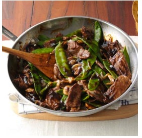 Stir remaining soy sauce mixture and add to pan. Bring to a boil; cook and stir 1-2 minutes or until sauce is thickened. Return beef to pan; heat through. Serve with rice. Yield: 6 servings.