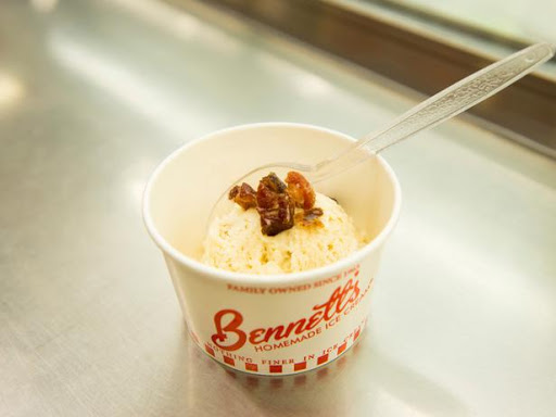 Pour into an ice-cream maker and churn according to manufacturer's instructions. Freeze until firm, 1 to 2 hours. Scoop and garnish with the bacon sweets. Ah yum. Then sit down with a spoon and EAT IT. Do not share.