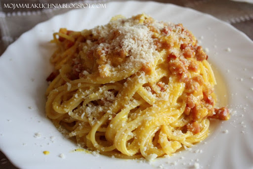 Prepare the sauce while the pasta is cooking to ensure that the spaghetti will be hot and ready when the sauce is finished; it is very important that the pasta is hot when adding the egg mixture, so that the heat of the pasta cooks the raw eggs in the sauce.