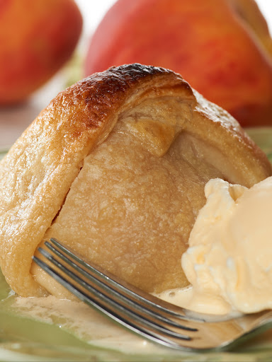 "An apple dumpling is like fall wrapped up in a tart package. These peach dumplings are summer's sensational answer to those autumn treats."—David