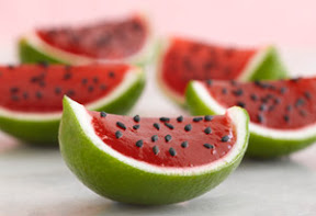 Carefully halve the gelatin-filled lime rinds again. Sprinkle with the seeds and serve.