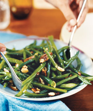 Bring a large pot of water to a boil. Add 1 tablespoon salt and the green beans and cook until tender, 4 to 6 minutes.