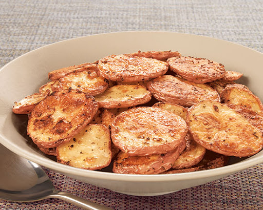 Preheat oven to 375°. Place the potatoes on a rimmed baking sheet. Sprinkle generously with the CREAMY PEPPERCORN. Drizzle with the olive oil and stir to coat the potatoes evenly. Bake at 375° for 45 minutes, turning every 15 minutes, until golden brown.