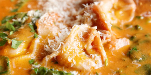 Add cold butter and stir until creamy, add heavy cream, tortellini, and spinach; mix until spinach is wilted and tortellini is warmed through.
