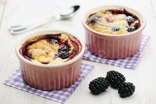 Bake for 2 minutes at 400°F. Open the oven, add 3 cherries per ramekin, sprinkle them with the remaining brown sugar and cover the fruit with the remaining batter, up to the top of the ramekin. Close the oven; bake for 10 minutes at 375°F, then lower the temperature to 350°F for another 35 minutes.