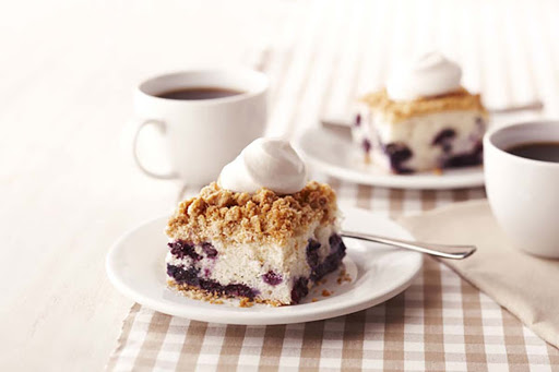 Mix cake mix, dry pudding mix and zest, then use to prepare cake batter as directed on package. Stir in blueberries; pour into 13x9-inch pan sprayed with cooking spray. Sprinkle with crumb mixture.