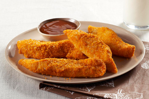VARIATION For a colorful presentation, place each serving of golden-brown chicken fingers on large lettuce leaf. Spoon the barbecue sauce into small individual serving bowls.