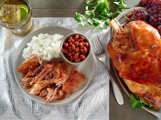 Heat oven to 350°F. Transfer pork, skin side-up, to roasting pan; bring to room temperature, about 1 hour. Pat skin dry. Cover pan tightly with aluminum foil. Cook pork until meat is fork-tender and internal temperature registers 145°F, 3 - 3½ hours; discard foil. Increase oven to 450°F. Cook pork, uncovered, adding water in ¼ cup measures if pan becomes dry, until skin is brown and crisp, 20 - 35 minutes, checking pan every 10 minutes.