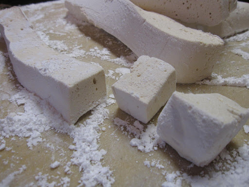 A great variation of a marshmallow to serve during the holidays. Can dip in chocolate, serve in hot chocolate, chopped and added to fudge, etc.