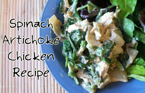 When chicken is almost cooked, add the well drained spinach, drained jar of artichoke hearts, cream cheese, and parmesan cheese.