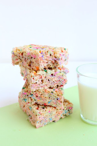 Add the marshmallows and stir frequently until the marshmallows have melted and the mixture is smooth. Add the Rice Krispies and the sprinkles and stir until well coated.