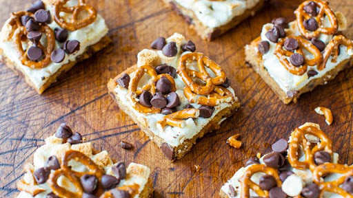 Pretzel S'Mores Chocolate Chip Cookie Bars