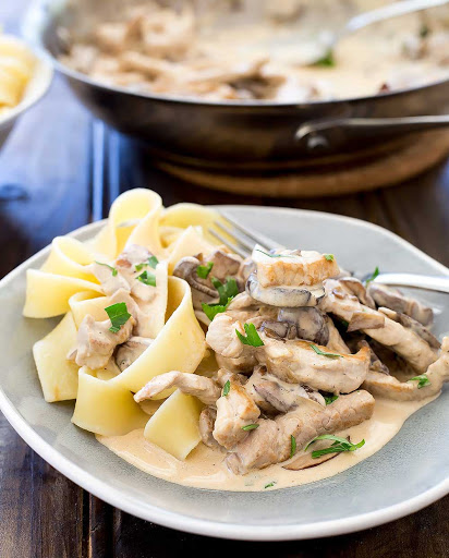 PORK STROGANOFF WITH BUTTERED NOODLES