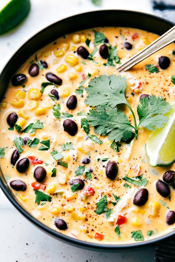Dump it and forget about it slow cooker meal! A delicious Mexican crockpot chicken and corn chowder that has the same delicious flavors of Mexican Street Corn!