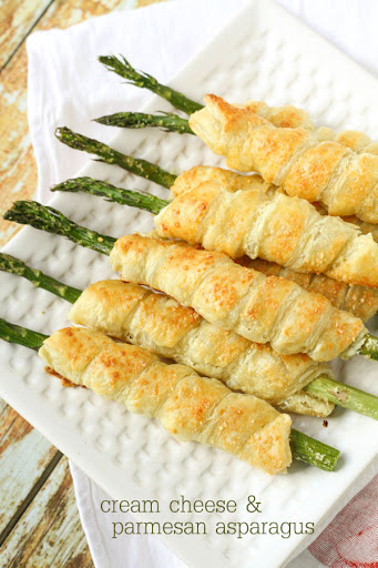 Our favorite way to have Asparagus - wrapped in puff pastry and filled with cream cheese! Everyone loves this Cream cheese and Parmesan Asparagus.