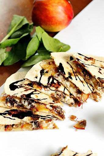Caramelized Nectarine and Feta Quesadlla with a Balsamic Glaze