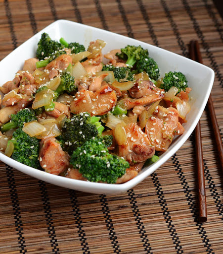 Add the remaining 2 tablespoons of Hoisin Garlic sauce, the soy sauce, rice vinegar, and sesame oil. Stir until everything is well coated. Add the broccoli and give everything one last stir. Transfer to a large plate and serve.