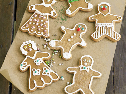 Preheat the oven to 350. Let the dough sit at room temperature for about 15 minutes, until pliable. Line 1 or more cookie sheets with parchment paper. Take about 1/2 cup dough at a time and roll on a floured surface until - to 1/4-inch thick. Cut out shapes with 5-by-3-inch gingerbread boy and girl cookie cutters. (Re-roll the scraps.) Using a spatula, transfer the cookies to the prepared cookie sheets, leaving space between them. Refrigerate the cookies for 20 minutes, then bake until they just begin to brown at the edges, 18 to 20 minutes. Cool slightly, then remove to a wire rack to cool completely.