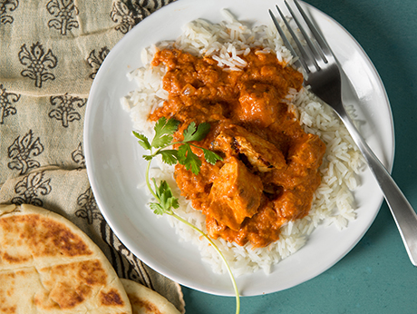 - Naan (Indian flatbread) and/or cooked Basmati Rice